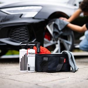 The Trojan Detailing Kit is your all-in-one solution for a complete, professional-grade clean. It includes a noodle wash mitt for safe, scratch-free washing, a precision detailing brush for tight areas, an ultra-soft microfibre cloth for streak-free finishing, and two 500ml dilution bottles for perfectly mixed cleaning solutions. Versatile, high-quality, and easy to use - This is the ultimate kit for anyone looking to elevate their car-care routine.