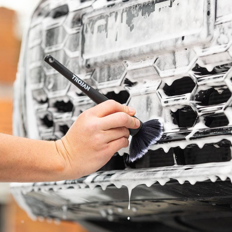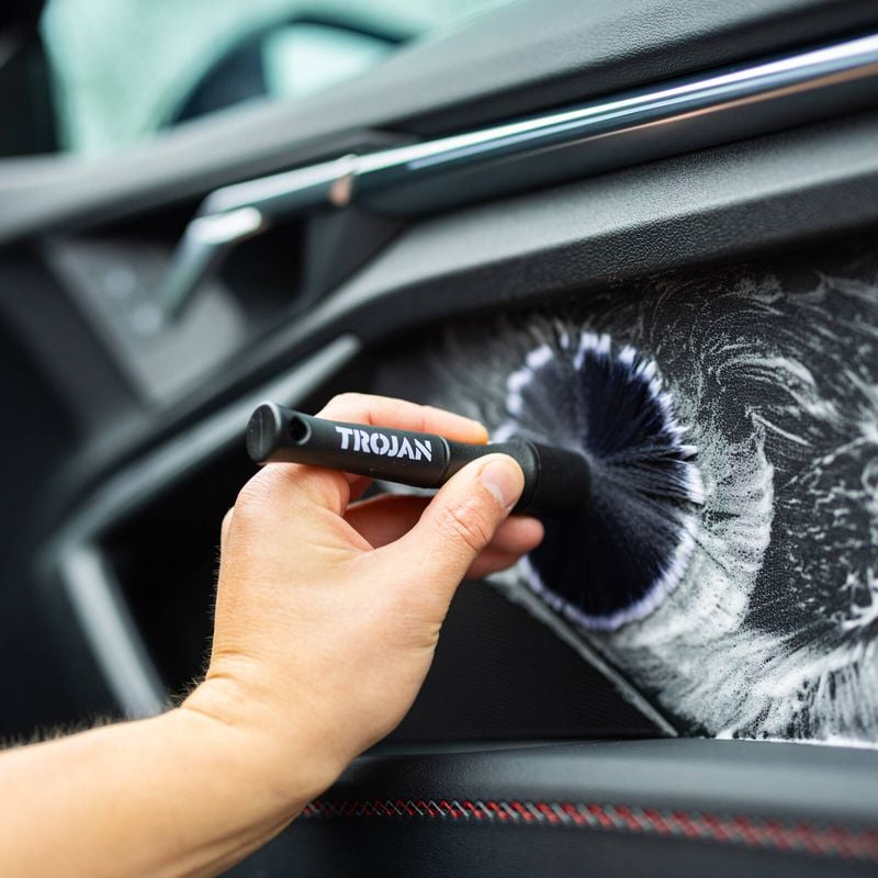 The Trojan Detailing Brush Set is designed for precision cleaning, featuring ultra-soft bristles that safely lift dust and grime from delicate surfaces. Each brush includes an ergonomic, non-slip grip for comfortable control, with multiple handle lengths to reach tight, hard-to-access areas with ease. Perfect for interiors, badges, vents, wheels, and more - This set delivers a gentle yet effective clean wherever you need it.