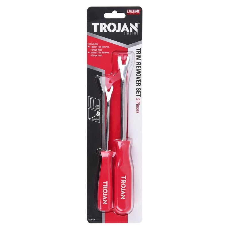 The Trojan Trim Remover Set is ideal for removing trim panels, clips, pins, badges and more. The angled head provides more leverage when dealing with stubborn fasteners and panels.